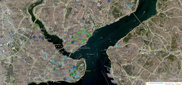 The diagram that follow is an attempt to include the information having gathered up to now in one map going slowly towards the direction of creating a pattern of the city.